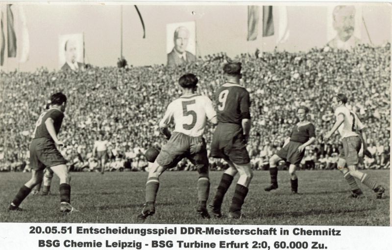 „Bitter für die Erfurter, die ihre Strategen damit nicht für das Chemnitzer Entscheidungsspiel gegen Chemie Leipzig einsetzen konnten. Für den Kampf um den Meisterkranz war Turbine damit entscheidend geschwächt. Ein Zufall? Immerhin war mit Fritz Gödicke ein Chemie-Spieler Leiter der Sparte Fußball im Deutschen Sportausschuss und das Entscheidungsspiel überhaupt erst wenige Wochen zuvor als Hilfe für Sonderfälle in die Wettspielordnung aufgenommen worden. (...) Einige Turbine-Kicker schwören noch heute, dass das Schild ‚DDR-Meister 1950/51: Chemie Leipzig‘ schon vor dem Anpfiff in Chemnitz daran befestigt war.“