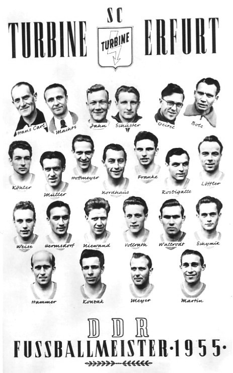 Ein Jahr später, inzwischen war im November 1954 der SC Turbine Erfurt gegründet worden, konnte der Meistertitel dann noch einmal erfolgreich verteidigt werden.